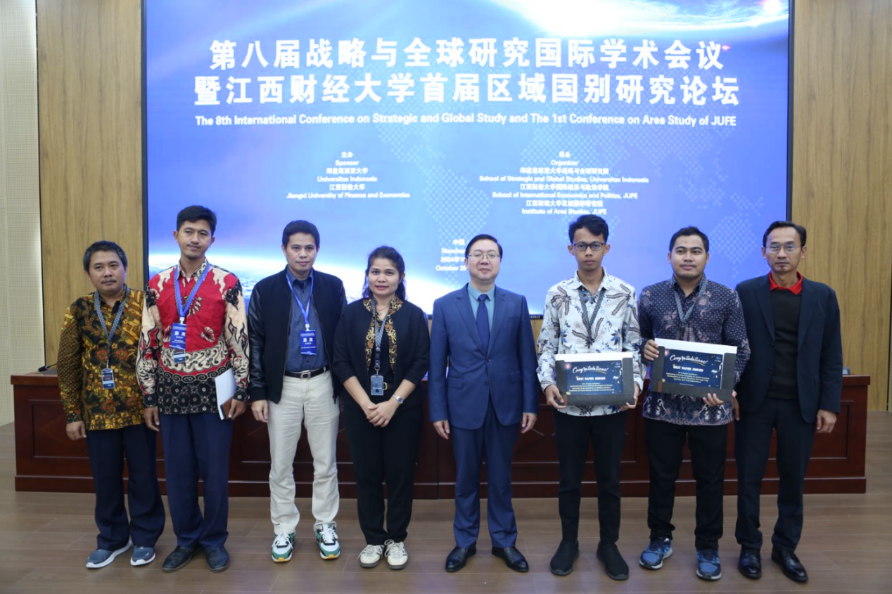October 25 - 26, sponsored by Jiangxi university of finance and economics, the university of Indonesia, regional national institute(JUFE), strategy and global institute(UI) to undertake The 8th International Conference on Strategic and Global Study and The 1st Conference on Area Study of JUFE, the conference theme for global security transformation, digital economy and regional development. More than 300 experts, scholars, teachers and students from Jiangxi University of Finance and Economics, University of Indonesia, University of Malaya, Kyushu University, Japan, University of Paramo University, University of Palestine and many other Chinese and foreign universities and research institutions attended the conference.