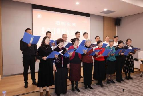 对话结束后,江财北京校友会合唱团登台献唱。歌声里既唱出江财人家国情怀,也传递出对相聚的珍视及对新校友的问候。最后,当《明天会更好》的旋律响起,全场校友纷纷起身合唱,歌声裹着暖意回荡在会场,将活动氛围推向高潮。