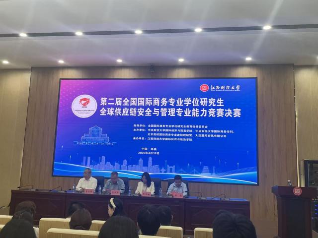 4月18日,第二届全国国际商务专业学位研究生全球供应链安全与管理专业能力竞赛决赛在我校举行。本届赛事由全国国际商务专业学位研究生教育指导委员会指导,中央财经大学国际经济与贸易学院、中央财经大学国际商务学科、北京高校国际商务专业虚拟教研室、大连瀚闻资讯有限公司联合主办,江西财经大学澳门宝典 承办。